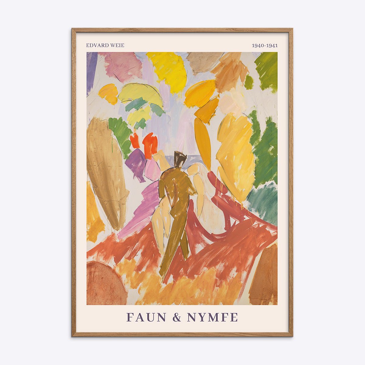 Motivet til plakaten "Faun og nymfe" var oprindeligt maleri med oliemaling på lærred af danske Edvard Weie. Værket kan stadig ses på Statens Museum for Kunst i København. Og selvom alle helt afgjort skal besøge museet i København, så synes vi